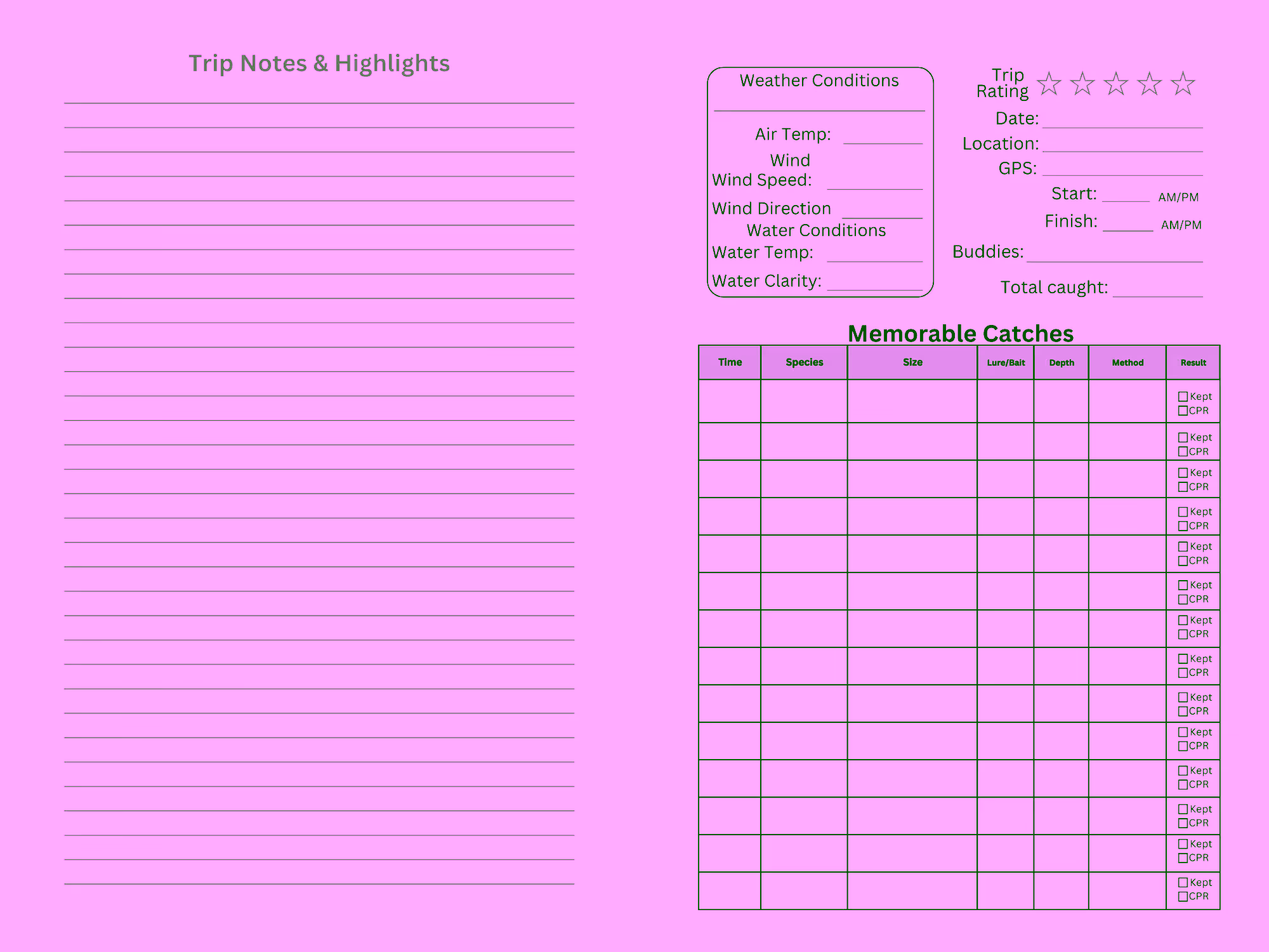 - Preserve Memories: Turn every fishing expedition into a lasting memory with our meticulously designed logbook.