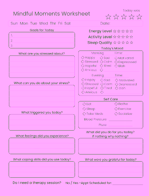 Discover the ideal companion for anyone prioritizing their mental well-being. This comprehensive worksheet empowers individuals to track their daily and significant moments, fostering the ability to reflect and share with loved ones or mental health professionals at a later time.