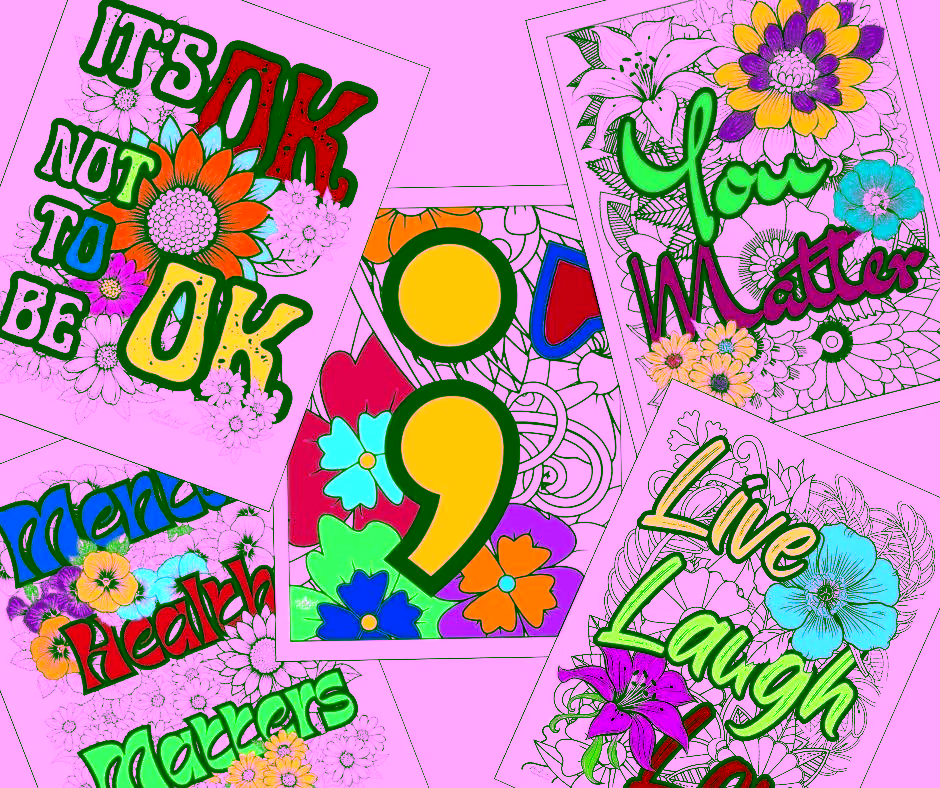 In his support of mental health Mark has put together a collection of adult coloring pages focused on mental health.  It gets it name from the semicolon or the pause, which is a reminder to pause in life.  All images in this collection can be reproduced for any mental health related activity, please see below for information.